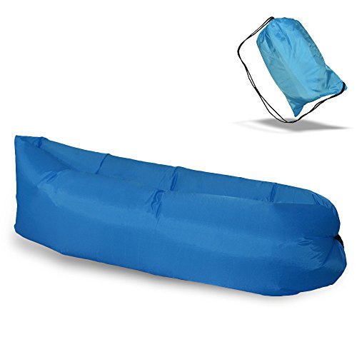 Zenoplige Ultimate OutdoorInflatable Air Lounger Nylon Fabric Sleeping Compression Air Bag with Tent Stakes (Blue)