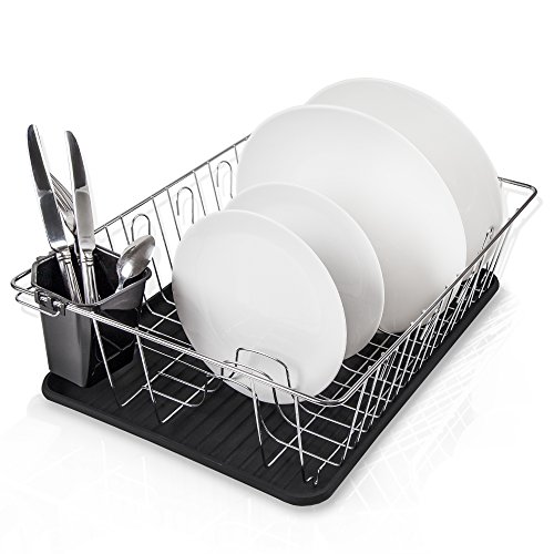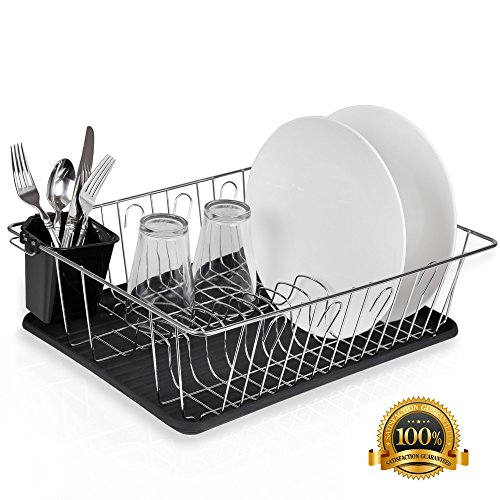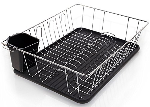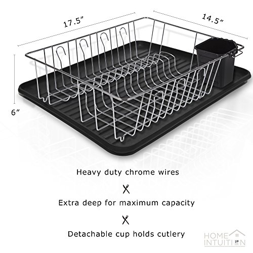 Home Intuition 3-Piece Dish Drying Rack Drainer Set 17" x 13.75" x 5" (Black)