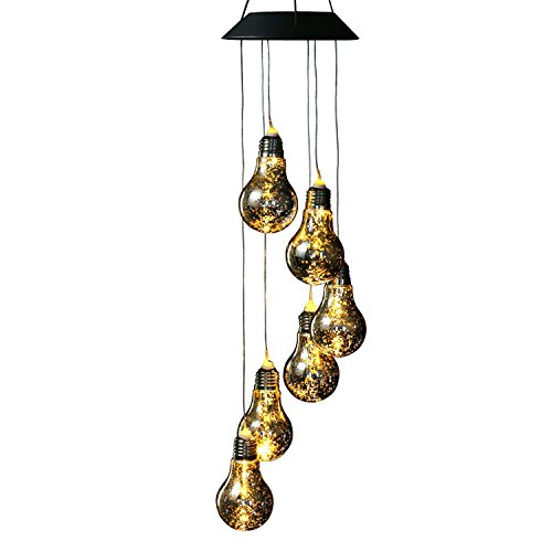 Bulb Solar Powered Mobile, Anzome Spiral Spinner Windchime Wind Chime Outdoor Decorative Windbell Light for Patio, Deck, Yard, Garden, Home, Pathway