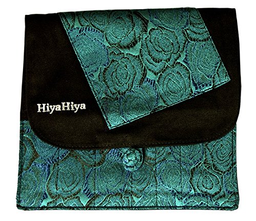 Brocade case measures approximately 7" x 7" inches when closed; case has 2 zipper pockets and 2 rows of pockets for your needle tips. Assorted fabric cases.