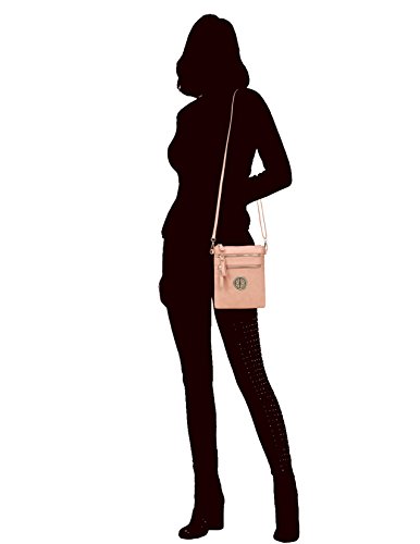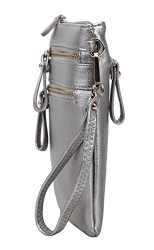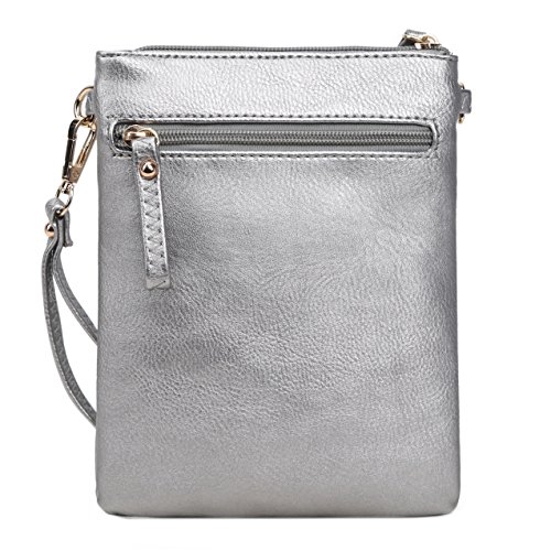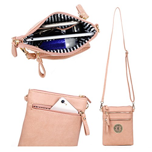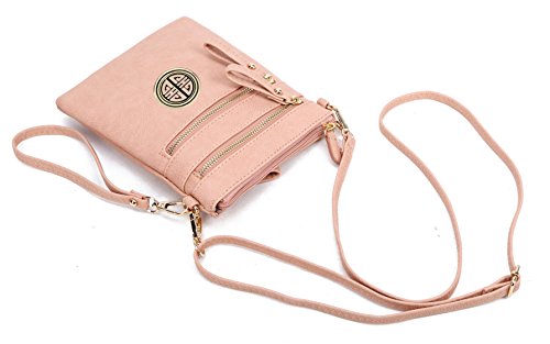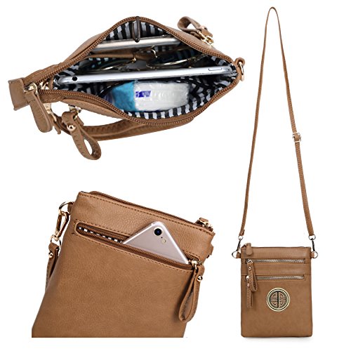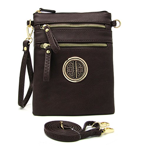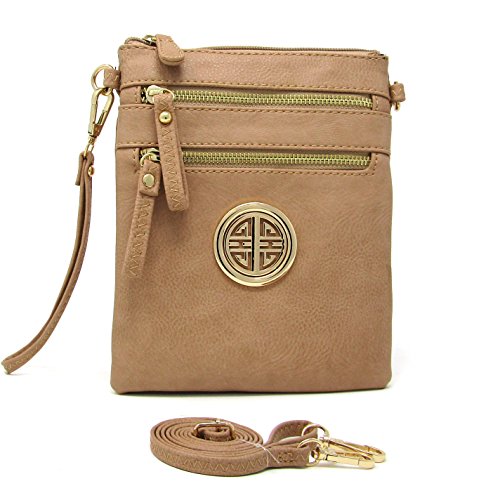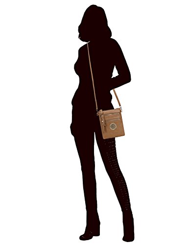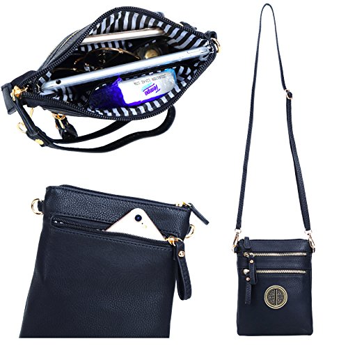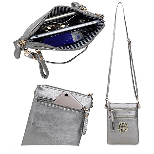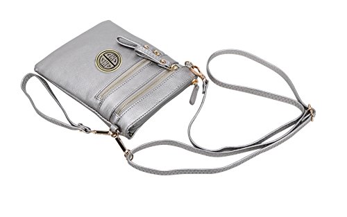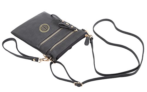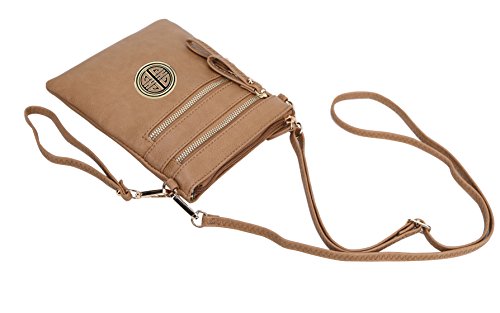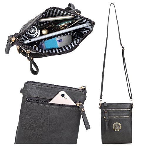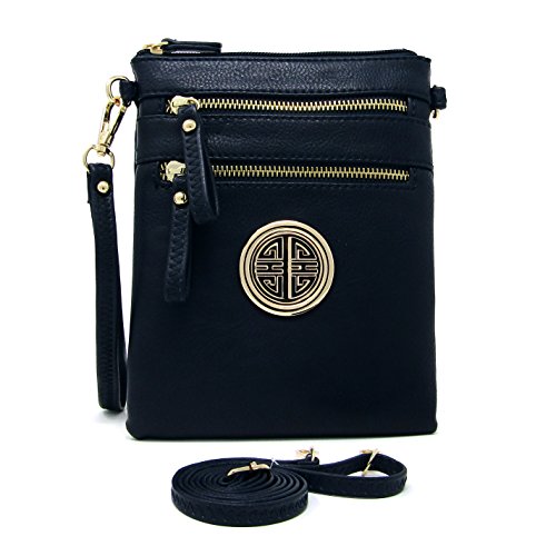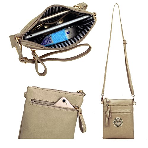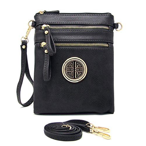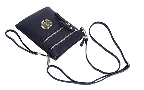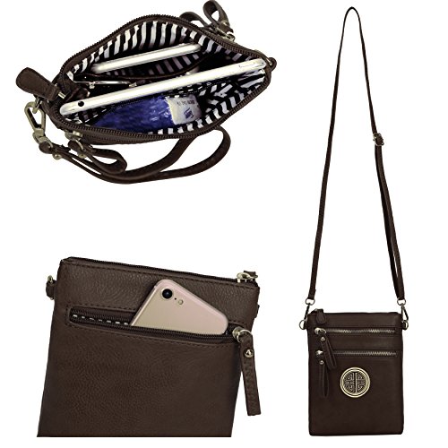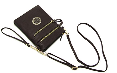 | Solene Women's Faux Leather Organizer Multi Zipper Adjustable Shoulder and Detachable Wristlet ... |