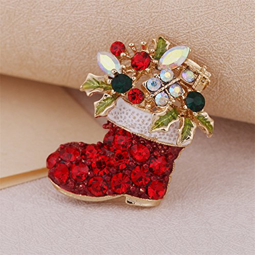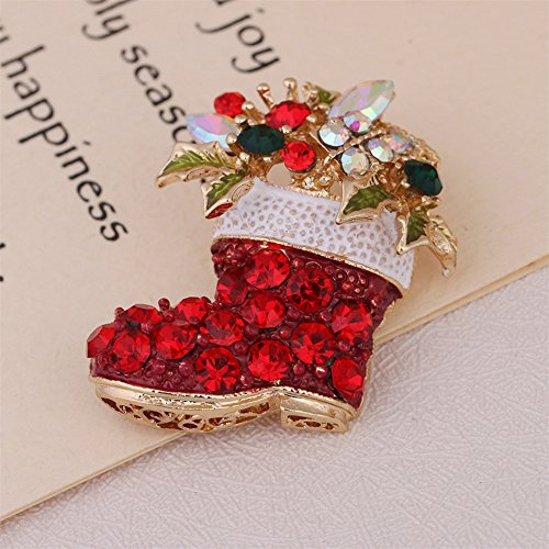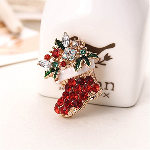 Red Socks Brooch Pin Crystal for Xmas Brooch Pin Colourful Flower Cheap Christmas Brooches Gift