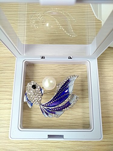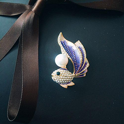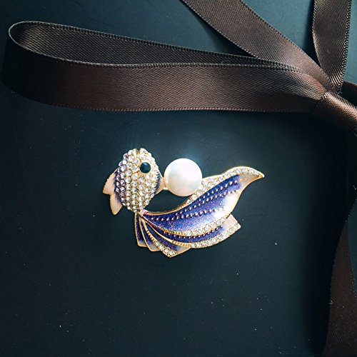 Freshwater Pearl Brooch Pins - Rhinestone and Crystal Fish Pin Silver Tone Enamel with Aqua Blue for Wedding Bridal