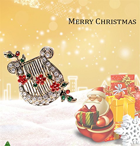 Gold-Toned Rhinestone Crystal Festive Christmas Brooch Pin for Christmas Decorations Ornaments Gifts