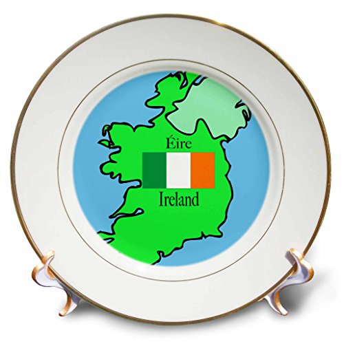 3dRose cp_37590_1 The Map and Flag of Ireland with Ireland Printed in English and Irish-Porcelain Plate, 8-Inch