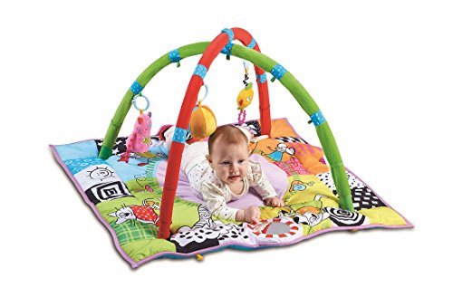 As baby grows, remove the arches to reveal a play mat with even more exciting activities. Baby can embark on a voyage around the mat to discover a teether, squeaker and crinkling parts, whilst enjoying the richly colored illustrations, designed to stimulate parent-baby interaction.