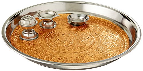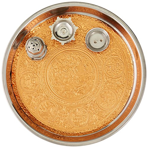 Puja Thali with Ganesha Lakshmi and Auspicious Symbols Shubh Labh - Brass