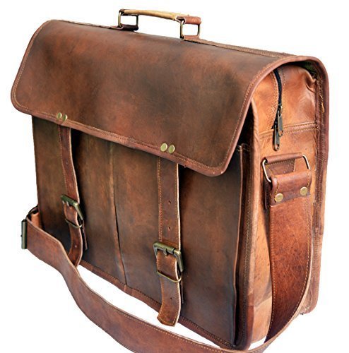 -. Feature : HIGH QUALITY. Old school yet very stylish 100% genuine leather laptop messeneger bag for your valueable laptop. / The bag is : 31 cm X 40 cm x 13cm (12" x 16" x 5" , height,width , depth) that can very well accomodate laptop as big as 15.6". / The bag has 3 interior compartments, the middle compartment is well padded to ensure safety of laptop. In the inside is one full sized zippered pocket to keep documents etc. The bag is big enough to accomodate a binder, laptop and a few books. / There are two pockets in the front exterior that can easily hold passport, Phone, small notepad etc. The rear has a zippered pockert to access the bag without having to open the bag. The main closure is real buckles that are very easy to operate once you get use to them in a week or so. / The bag has an adjustable wide shoulder strap. The strap is wide enough to comfartably carry the bag even when heavy.