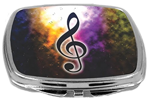 Rikki Knight Compact Mirror, Music Notes On Rainbow Orange Smokey Background