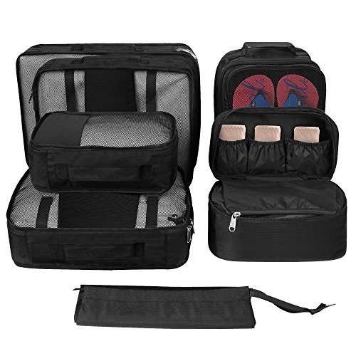 Studio : LNGLAT Publisher : LNGLAT Binding : Kitchen Product Description A Place for Everything Packing cubes are certainly lightweight fabric bags that you'll lighten your load and use to separate your suitcase into manageable sections. One of the main advantages of these packing cubes is their versatility. - 1 × Extra Large ( 17.5" x 12.75" x 4"): Roll and compress sweaters and pants in the extra large one. - 1× Large (13.75" x 12.75" x 4"): T-shirts, scarves and other accessories in the large. - 1× Medium (13.75" x 9.75" x 4" ): Socks and small items in the medium. - 1× Small (11" x 6.75" x 4"): your keys, phone charger, lip balm, and subway card in the small. - The underwear bag ( 10.47"× 5.3"× 4.53") could make a good home for undies. - Laundry bag (14.2"× 11.46") hold a decent-sized pile of dirty duds, separate dirty clothes and clean clothes when you are on the move. - Shoe bag (11.65"× 8.19" × 4.84") is a perfect solution for luggage, works great to hold two pairs of women's sandals or flats, or a pair of men's shoes, keeping shoes dust free.