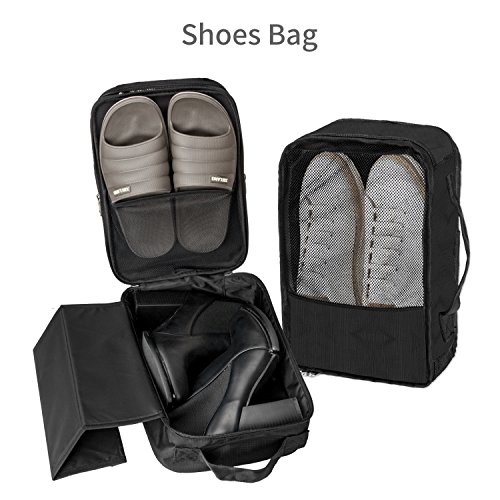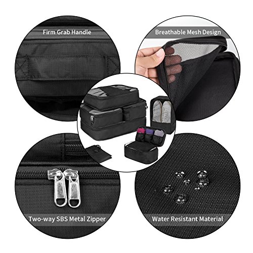 The Difference is in the Details - This LNGLAT packing cubes is crafted from durable and waterproof fabric with great quality stitching and binding edges. - Mesh top for visibility and breathability help you see into each box without having to unzip the lids, the TSA agent also can more easily see what's going through. - Webbing carry handle is strong enough that you can hang cubes for long periods of time without worrying that the weight of the items inside will cause the fabric to tear. - The interior compression straps help maximize the interior space of the cubes by squishing everything down, protect your garments against wrinkles throughout your trip. 0