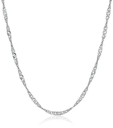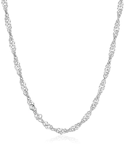 Add glamorous sparkle to your neckline with the Sterling Silver Italian Singapore Chain Necklace. The unique twisting shape that this chain-style possesses creates a delicate yet flavorful look. Some of the design and fine-craftsmanship practices seen in this Singapore Chain are inspired by Egyptian, Greek, and Asian culture, discovered centuries ago during the Etruscan period in Southern Italy. The wonderful quality and sophistication of this Italian-made chain is superior. Wear the chain with a jewel-encrusted pendant for an elegant look or solo to represent your dainty style. Comes in a variety of chain lengths and thicknesses.