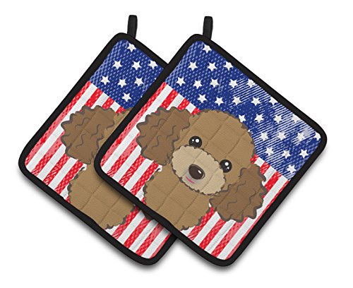 Caroline's Treasures American Flag & Chocolate Brown Poodle Pair of Pot Holders BB2186PTHD, 7.5HX7.5W, Multicolor