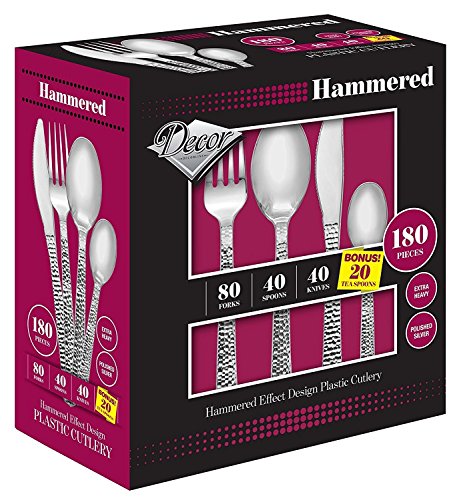 Decor Hammered Effect Design Plastic Silverware, 180 Pieces