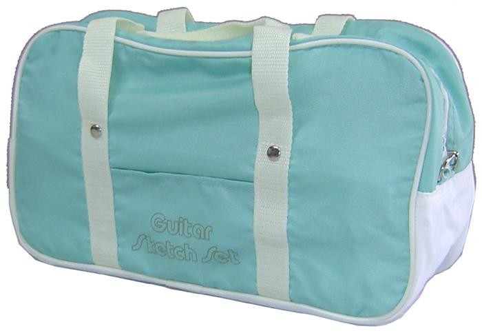 出し入れしやすい、ゆとりの設計で、防水加工をほどこした丈夫な生地を使用しています。写生や持ち歩きに便利なバッグに、ギターペイント、画筆、ダブルパレット、ジャンボ筆洗などがセットになった機能性の高いアイテムです。取り外しのできる肩掛け紐付です。 |