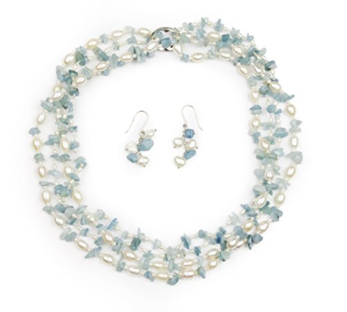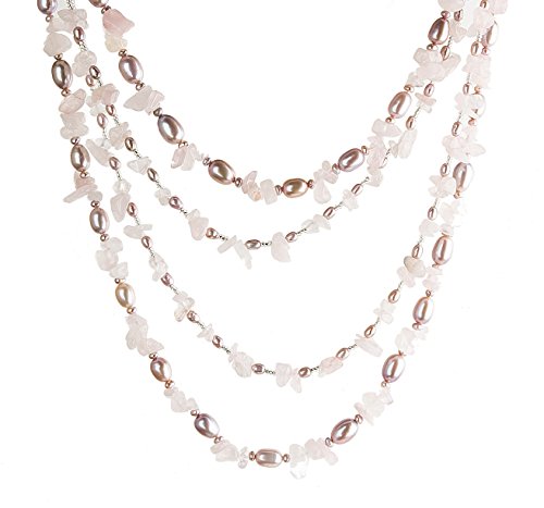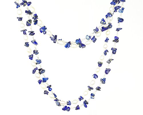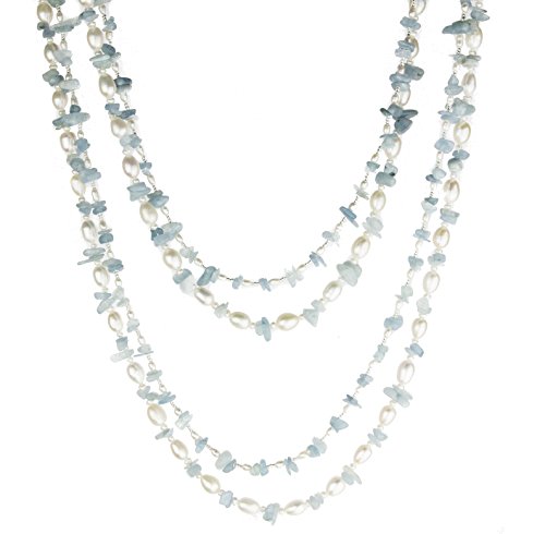Sky is part of HinsonGayle's acclaimed multi-use rope collection. Her luminous white freshwater pearls are interspersed with eye-catching chunks of blue aquamarine beryl. Sky is a unique and versatile piece composed of two endless strands that can be used separately or together with her sterling silver enhancer to create a myriad of distinct necklace styles. Both ropes can also be wrapped as fashionable bracelets. Some of HinsonGayle's favorite looks include wearing her strands individually or together as full throw-over length ropes, creating complex torsade twists, draping one rope full length while doubling the second strand, or simultaneously pairing a necklace with a wrap bracelet. Sky is the perfect piece of jewelry to never go out of style, as her versatility brings endless possibilities to her wearer. This head turning double-rope design is handcrafted from various shaped freshwater pearls, blue quartz crystals, and shimmering beads. Gemstones may have been treated to enhance their appearance and durability.Feature
