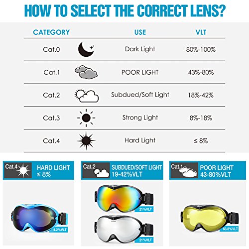【Spherical Ventilated Dual Lenses& Three-Layer Foam】: Spherical ventilated dual lenses offer an ultra clear wide view and keep your eyes in warm condition. Three layers of memory foam has soft, smooth texture and strong impact resistant capacity, which can provide you with safe and comfortable skiing experience.