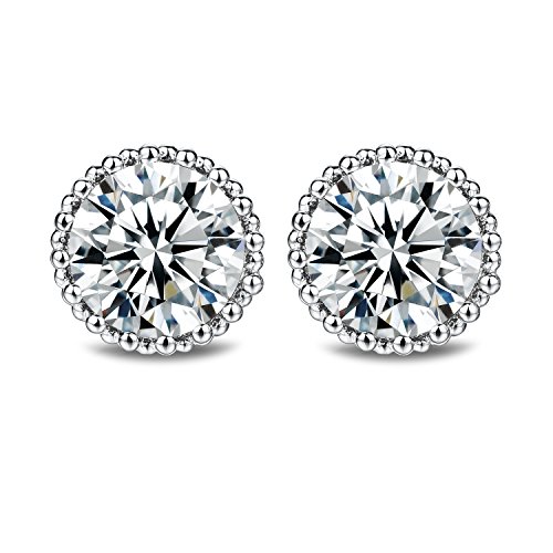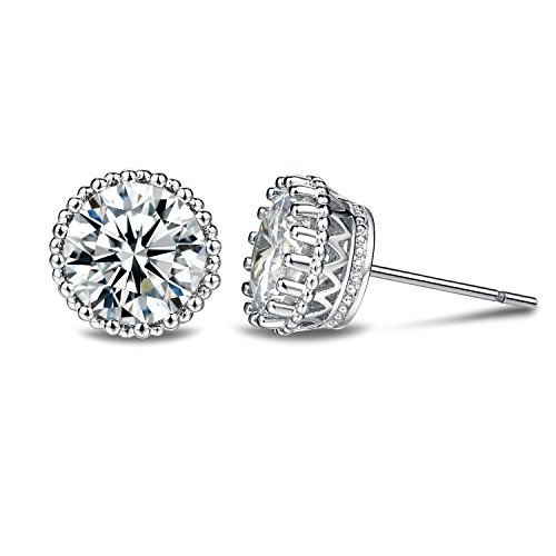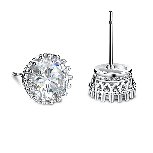 Earring Metal: Highest Quality copper plated with pure white gold has been used to make the artistic outer chassis of the cubic zirconia stud earrings, its holds the stone in place and provides a protective cushion with 16 small metal pillars that run across the circumference of the ring. This crown shape design matches perfectly with these CZ stone earrings, and the details are marvelous.