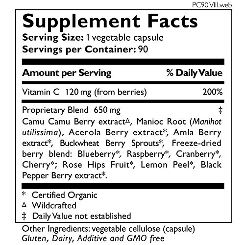 -. Feature : 100% natural vitamin C from organic & wild berries including camu camu, acerola, & amla / Contains only natural vitamin C, NO added synthetic ascorbic acid / Helps bolster your healthy immune system / Free of fillers, flavorings, binders, and other chemical additives / Wildcrafted Ingredients, Gluten-Free, Dairy-Free, Kosher, Chemical-Free, Non-GMO