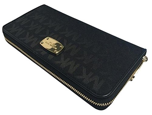 Michael Kors ZA Jet Set Large Travel Continental Signature MK Jacquard Black Wallet Clutch Organizer Planner