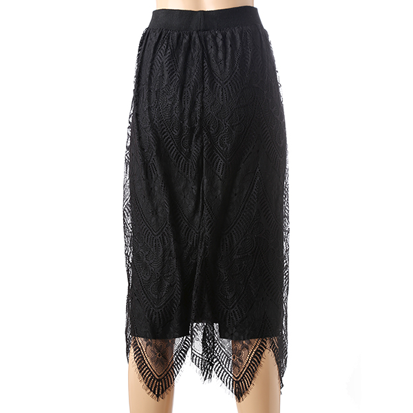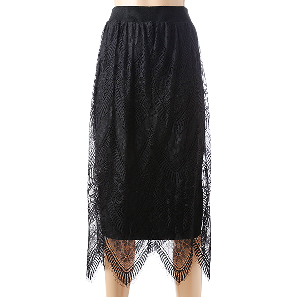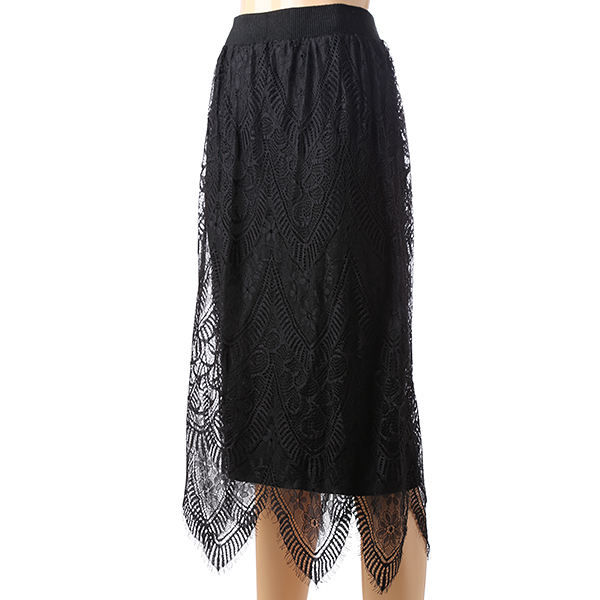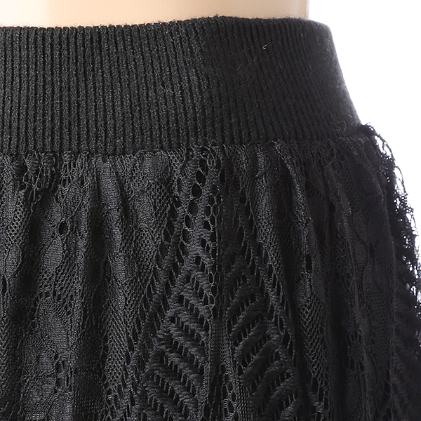 뒤트임이 있는 니트 H라인 스커트에 레이스를 레이어드한듯