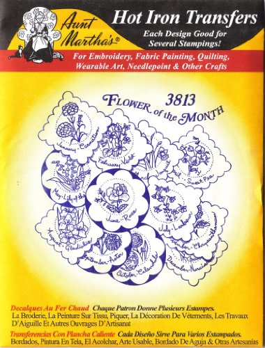 Flowers of the Month Aunt Martha's Hot Iron on Embroidery Transfer