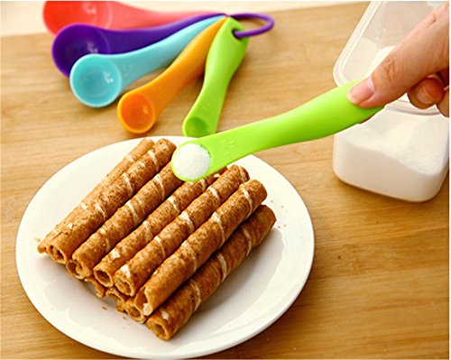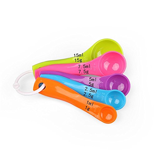 EASY USED: This item is sure to brighten any kitchen. Five piece measuring spoons are great tools for using when following any recipe in the kitchen