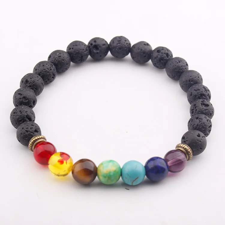 7 Chakra Gemstone Bracelet Lava Stone Cr:Dorp shipping
