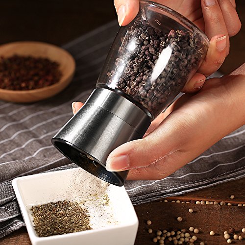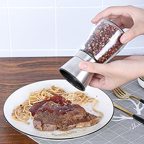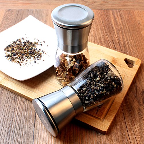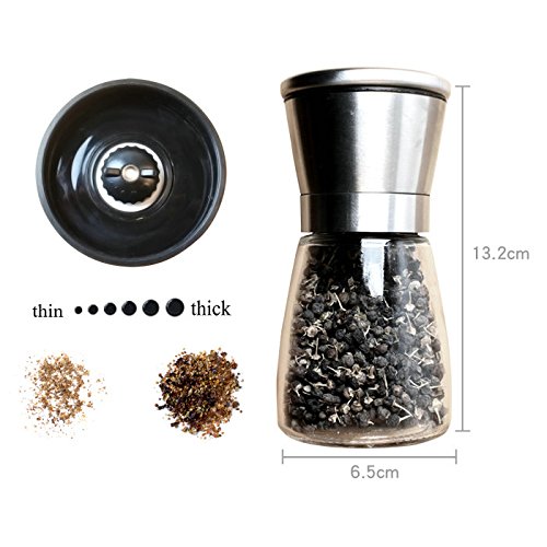 Product Description Created with the purest, highest quality materials. Upgraded Ceramic grinder, Brushed stainless steel body and Glass. Simple design and ease of use! 5 adjustable grind settings! Turn clockwise to make grind more coarse. Turn counter clockwise to make grind more fine. (One Full turn of the dial adjusts the grinds one level). Easy to clean and dishwasher safe. Food Safe- Toxin and BPA Free. The grinders sit upright and never leave a mess on your table or counter. Shipping time is Approx 7-10 working days,if you have any question ,pls contact us anytime .Thank you !!! 0