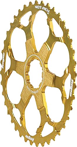 Studio : Hope Publisher : Hope Binding : Misc. Product Description T-Rex expands your 10-speed cassettes usable range for extra low gearing. Made in the UK and features specific shift points for factory-level shifting. * Precise matching of the tooth profiles and shifting points specific to each cassette * Hard anodized 7075 T6 Aluminum * Perfect mating of supporting tabs to reduce flex and aiding shift performance * Allows you to upgrade your existing 11-36 10spd cassette to give an 11-40T range * T-Rex installs behind your existing cassette and replaces one of the smaller sprockets, usually the 17T * Lower B-tension adjustment is needed ensuring good shifting throughout the cassette range compared to fitting a 42 * Compatible with Sram PG10360, PG1050 and PG1070 11-36 cassettes Item Specifications --- Cassette Body Type: Shimano/SRAM 8, 9, 10 Speed Defined Color: Gold Intended Cassette Compatibility: Shimano Drivetrain Speeds: 10 Tooth Count: 40 0