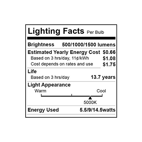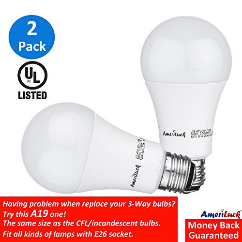 AmeriLuck A19 3-Way LED bulb Low-Medium-High 40/60/100W Equivalent 5.5/9/14.5W 500/1000/1500lumens Daylight 5000K Omni-Directional E26 Medium Base Fits All Kinds of Lamps 2 Pack