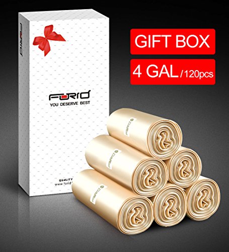Small Trash Bags 4 Gallon, 120pcs Ultra Strong Thicken Small Garbage Bags 15-Liters Wastebasket Bags for Kitchen Home Bathroom Bedroom Office Rubbish Bin Waste Bin ( Golden,6 Rolls)