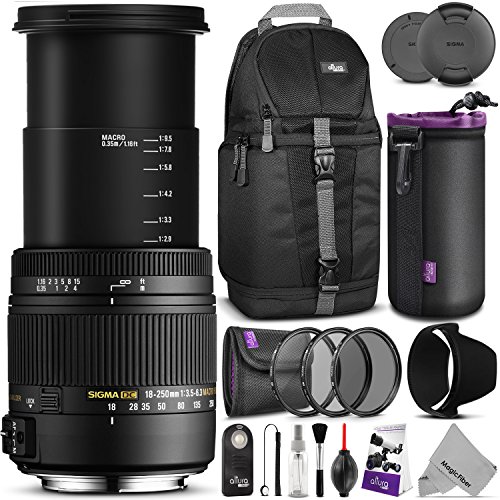 Sigma 18-250mm f3.5-6.3 DC MACRO OS HSM Lens for CANON DSLR Cameras w/ Advanced Photo and Travel Bundle