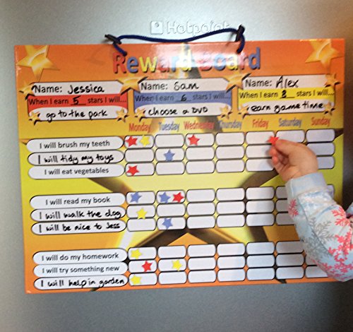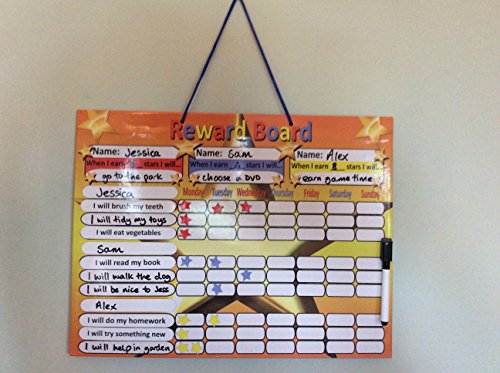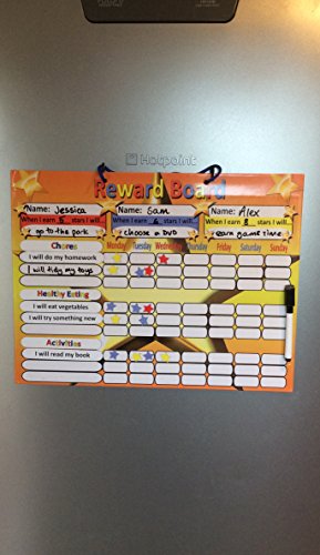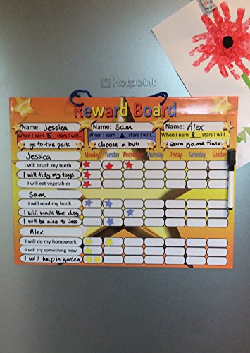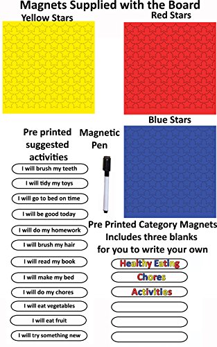 Studio : Tiny and Tidge Publisher : Tiny and Tidge Binding : Toy Product Description A perfect way for parents, nursery workers and teachers to reward children's good behavioral choices. The Board can be used by up to three children and comes with a suggested list of activities and behavioral categories. The board can be used in a number of ways - three examples have been shown in the product images and will even flex slightly to fit curved fridges. The only Magnetic reward chart on the market which has magnets to attach it to the fridge and has a magnetic pen with it's own dry wipe eraser. Never lose your pen again! 0