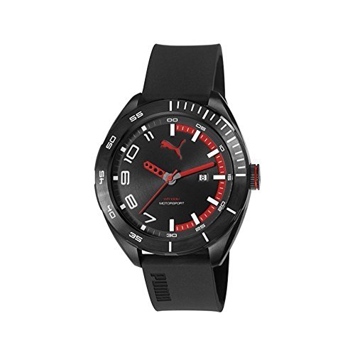 -. Title : PUMA PU103951001 OCTANE Black and Red flexable silicone band, silicone coated case with 3-hand movement