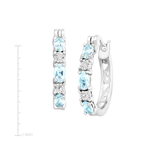 December's birthstone gets the special treatment with this classic, never-fail style! Trios of oval-cut sky blue topaz totaling 1 5/8 ct are joined with diamond accents in a setting of platinum over brass hoop earrings. Pieces measure 7/8 inches in diameter and feature hinge with notched post back findings.