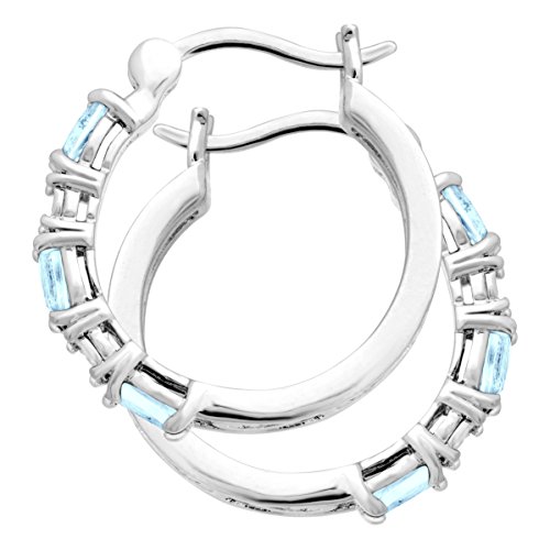 Trios of sky blue topaz are joined with diamond accents in a set of hoop earrings crafted in platinum over brass