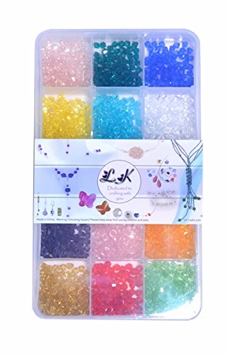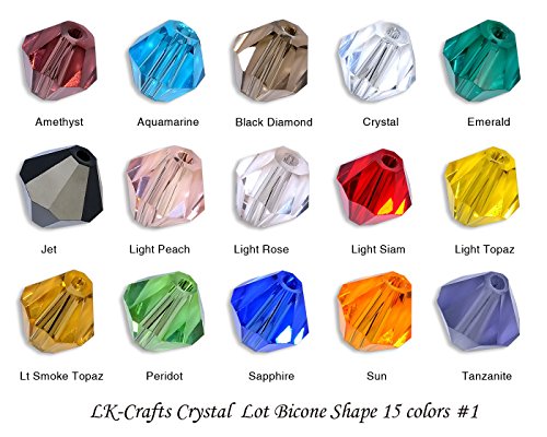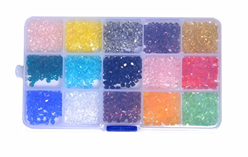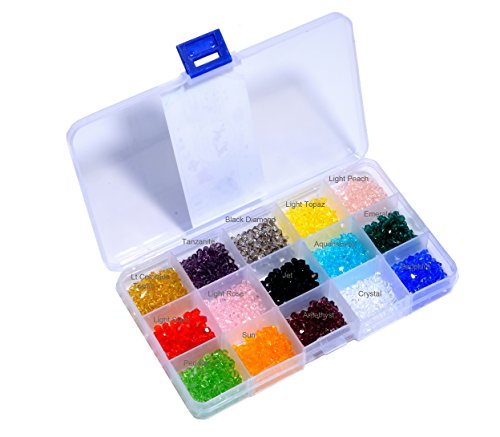 LK-CRAFTS Wholesale Lot 1500pcs Bicone (similar cut #5328/ 5301) 4mm Crystal Beads 15 colors with storage box. #1
