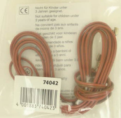 Supplemental Feeder Wire Set. Gauge: H0. Red and brown feeder wires with spade connectors at both ends, for C Track. Length 2 meters / 78-3/4".