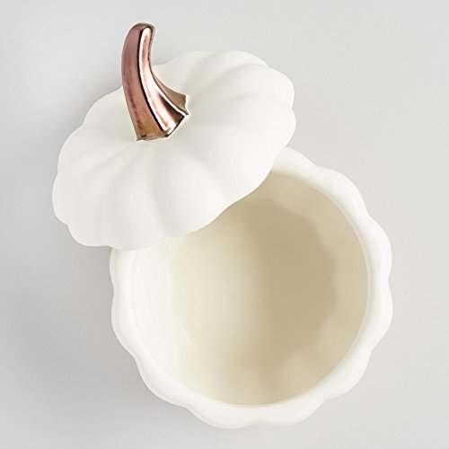 Product Description A festive dish for the harvest season, our exclusive white ceramic pumpkin bakers features a lid to retain moisture making it ideal for oven-to-table serving. 0