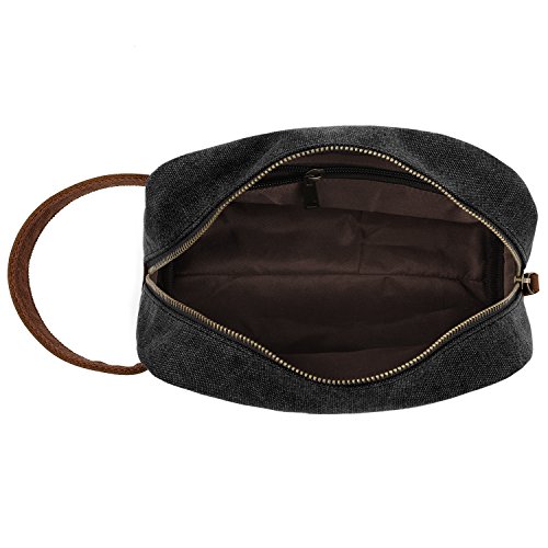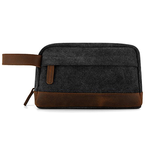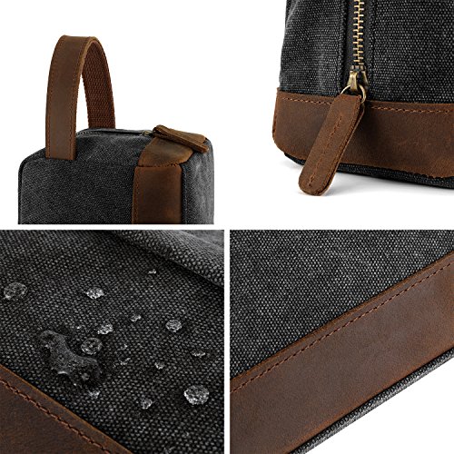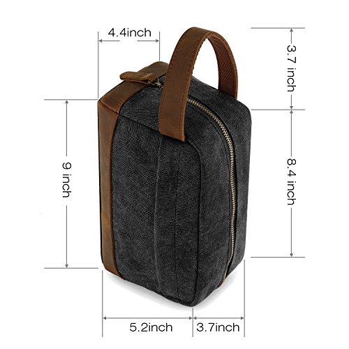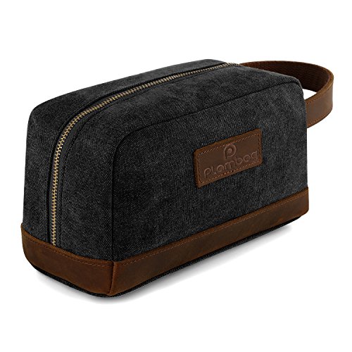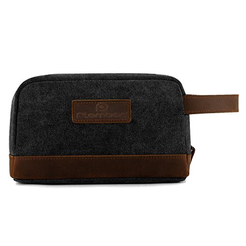 Plambag Canvas Leather Toiletry Bag Travel Dopp Kit Cosmetic Makeup Organizer(Dark Gray)