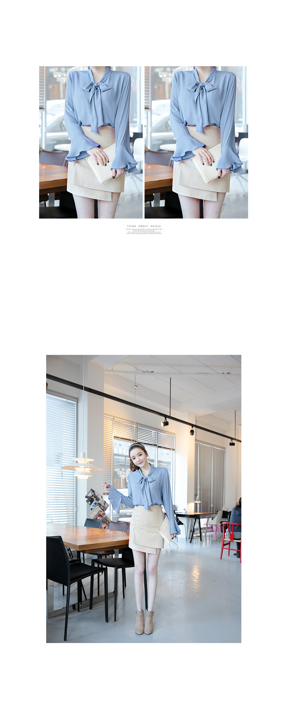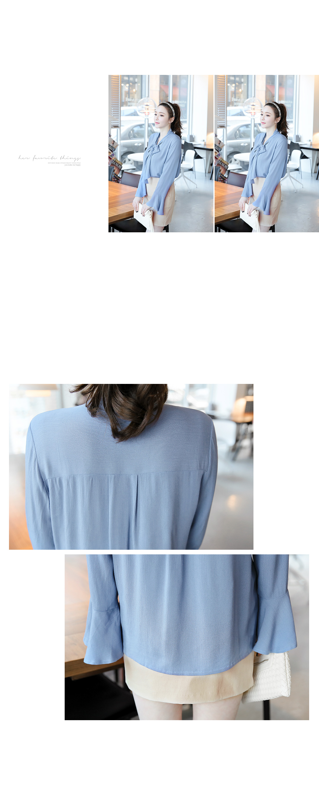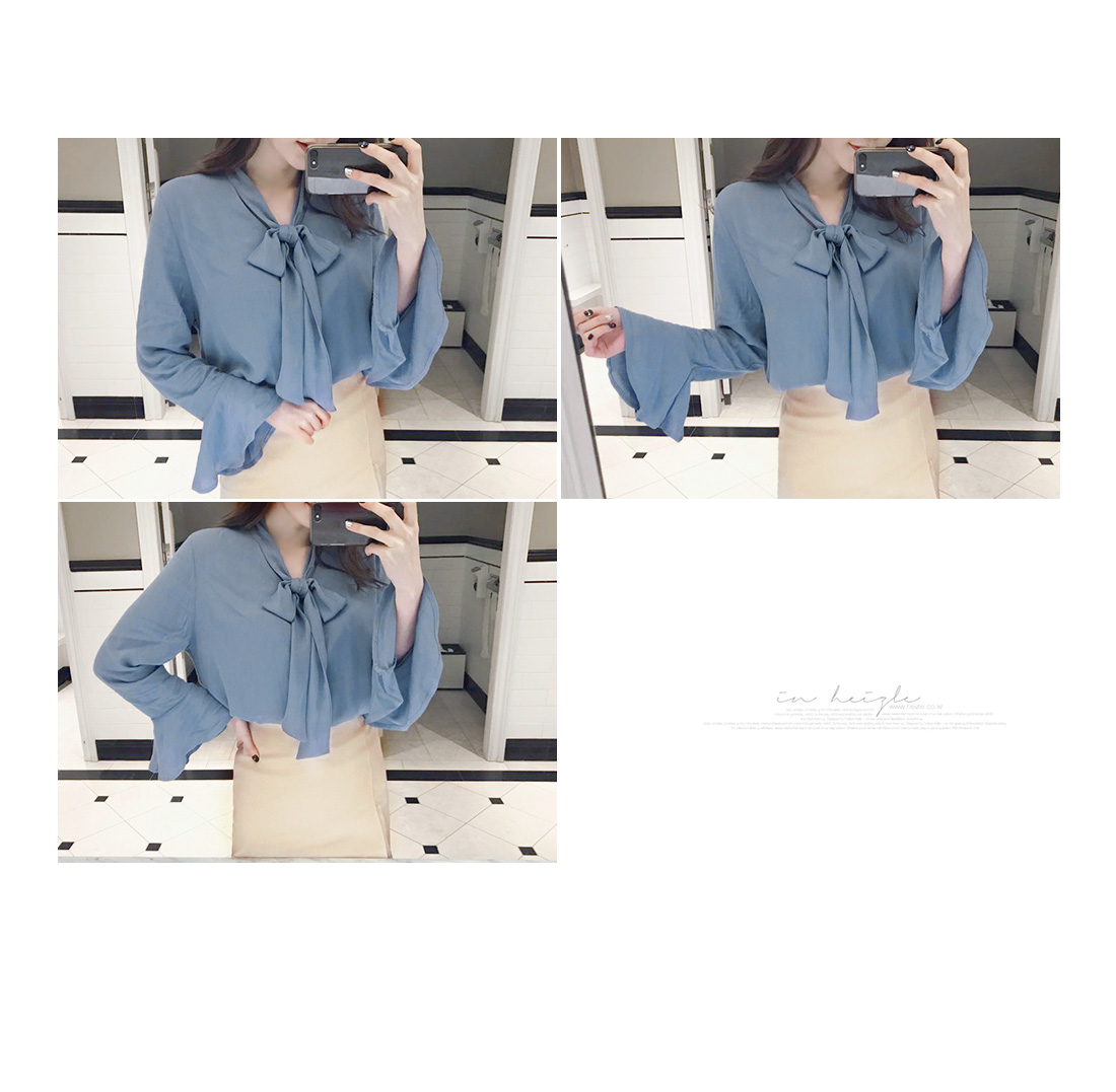 차르르~ 떨어지는 실루엣으로 여성스러움이 물씬 느껴지는 블라우스에요^^ 하늘하늘한 소재감이 여릿한 실루엣을 연출해주는 블라우스구요 넥라인 리본으로 여성스러운 무드를 연출해 주는 아이템이랍니다~ 소매는 러플 디자인으로 여성스러움을 한층 더 강조해주구요 심플한 무지소재로 다양한 룩에 간편하게 연출할 수 있는 아이템이에요^^ 스커트,데님 등 어디에 매치해도 데일리하게 어울리는 블라우스랍니다!