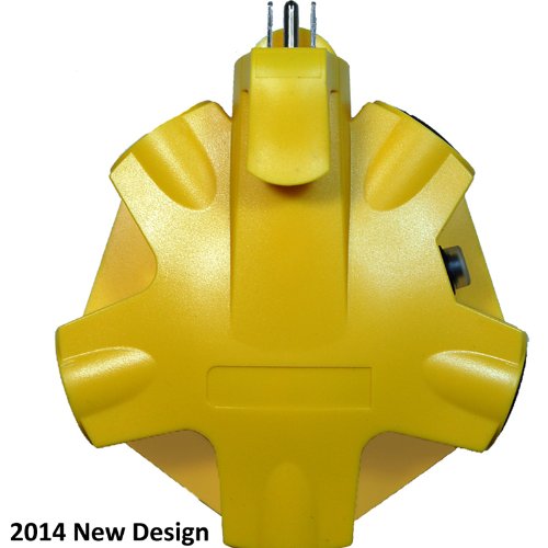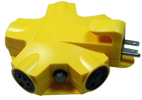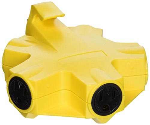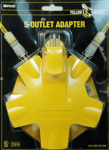 Yellow Jacket 827362 Outdoor Outlet Adapter Converter, Yellow, 5-Outlet. 125V -15A rated 3-prong grounded outlet adaptor. Features 2 cord locks, keeping cords secure and in place. Adapter outlets may be used with large transformers or standard sized plugs, UL Listed. Outlet adapter converts a single outlet into 5 grounded outlets. Suitable for outdoor/indoor use, works great for DIY projects and construction sites. The Woods (R) brand is a registered trademark of Coleman Cable Inc.Feature