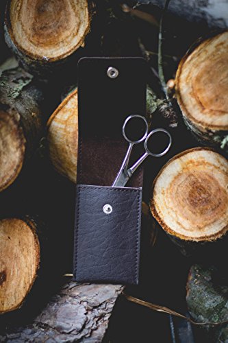 Beard & Mustache Scissors from Striking Viking - Steel Scissors for Beards and Mustaches. Includes Synthetic Leather Case for Travel and Storage.