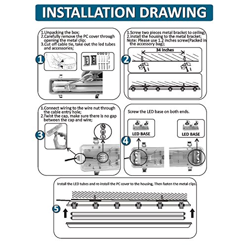LED BULBS - 2x 22W LED 4ft 5000K T8 bulbs included, 44w total, 4500lm output. No buzzing ballasts, no flickering, no mercury or hazardous materials, no UV or IR radiation