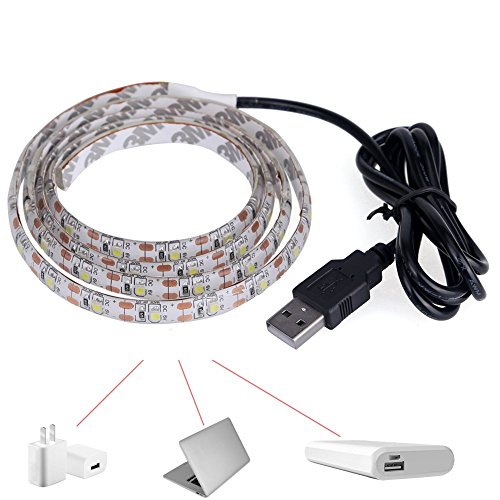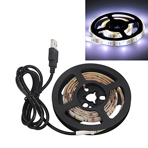 FISHBERG 100CM Waterproof Flexible USB LED Strip Lights 5050 SMD 30 Leds TV Background Lighting Kit w/5V USB Cable (White)