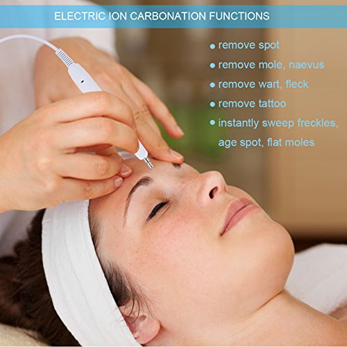 -. Feature : INDEPENDENT FUNCTIONS: spot removal, nutrition importing/exporting, blackhead removal and spraying,these functions will help you solve various skin problem to make your skin rejuvenated,suitable for professional use, such as beauty parlor and SPA / ELECTRIC ION CARBONATION FUNCTIONS: remove spot,mole, naevus, wart, fleck, tattoo,to instantly sweep freckles, age spot, flat moles, etc, removal can be achieved quickly,without burning the skin / WATER OXYGEN SPRAYER: strengthen the skin's respiratory function, make the cells do aerobic exercise, to increase the skin's activity and to promote skin metabolism, so as to achieve the effect of whitening, replenishment, tender skin, repairing sensitive skin / IONTOPHORESIS: deep importing skin needed essence to accelerate penetration and absorption / VACUUM SUCTION SYSTEM: pulling massage to enhance the permeability of the skin, promote collagen fiber reproduce,super strong suction can thoroughly remove blackhead, pimple and clean dirt, grease in the pore