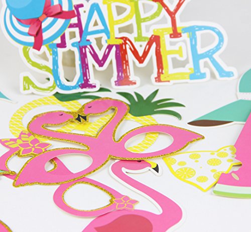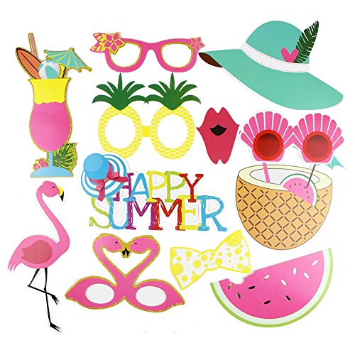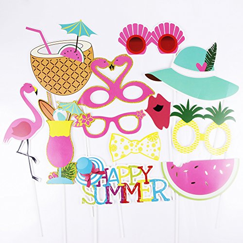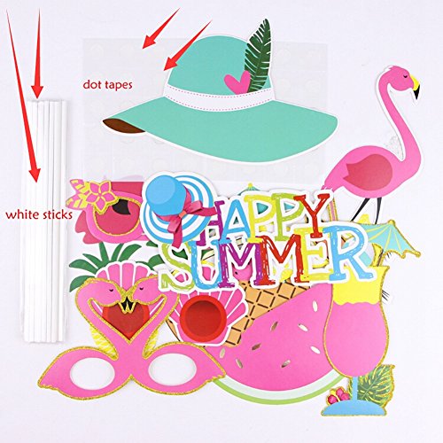 Summer Party Photo Booth Props Kit Flamingo Pineapple for Luau Tiki Party Supplies SUNBEAUTY,12pcs