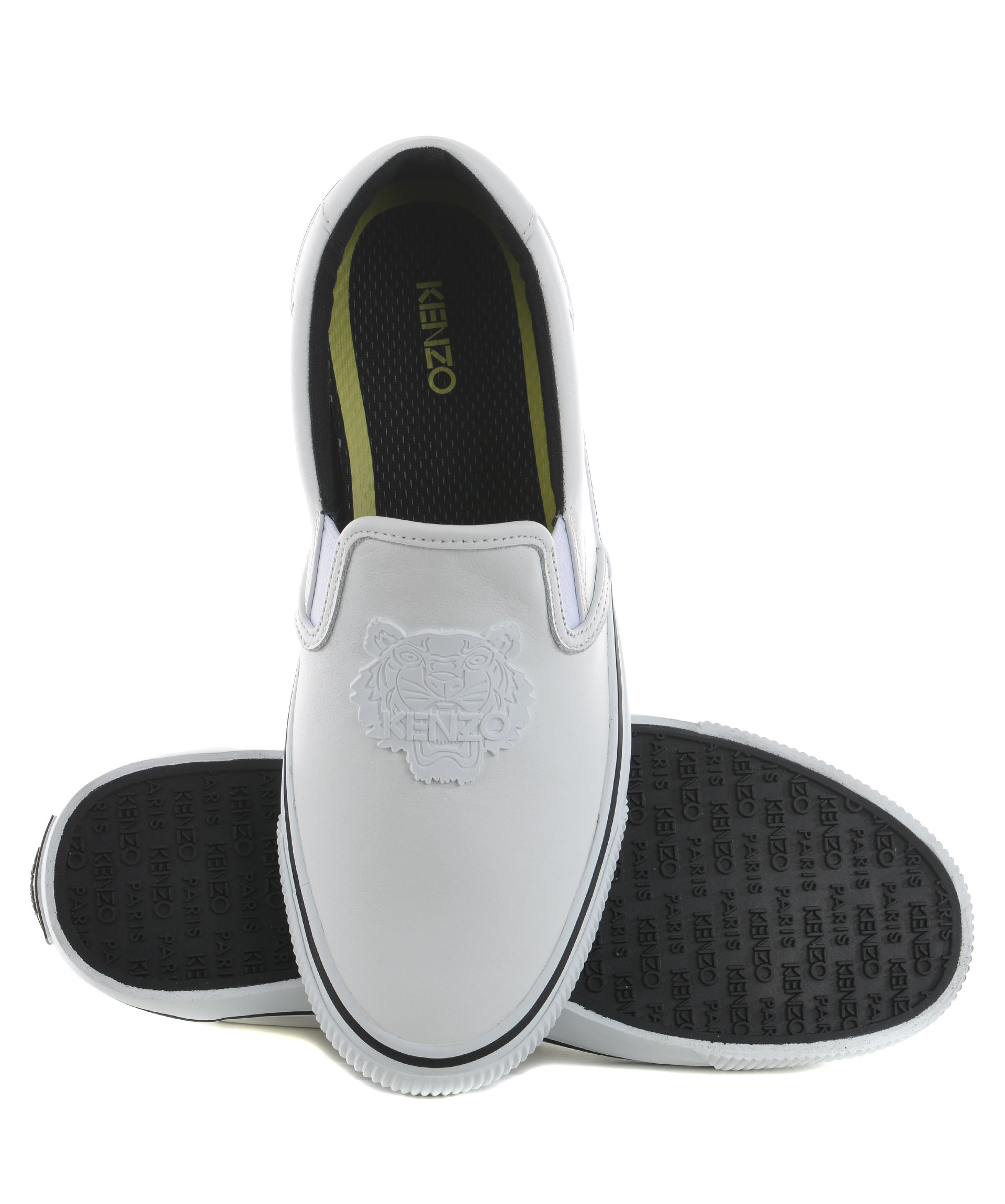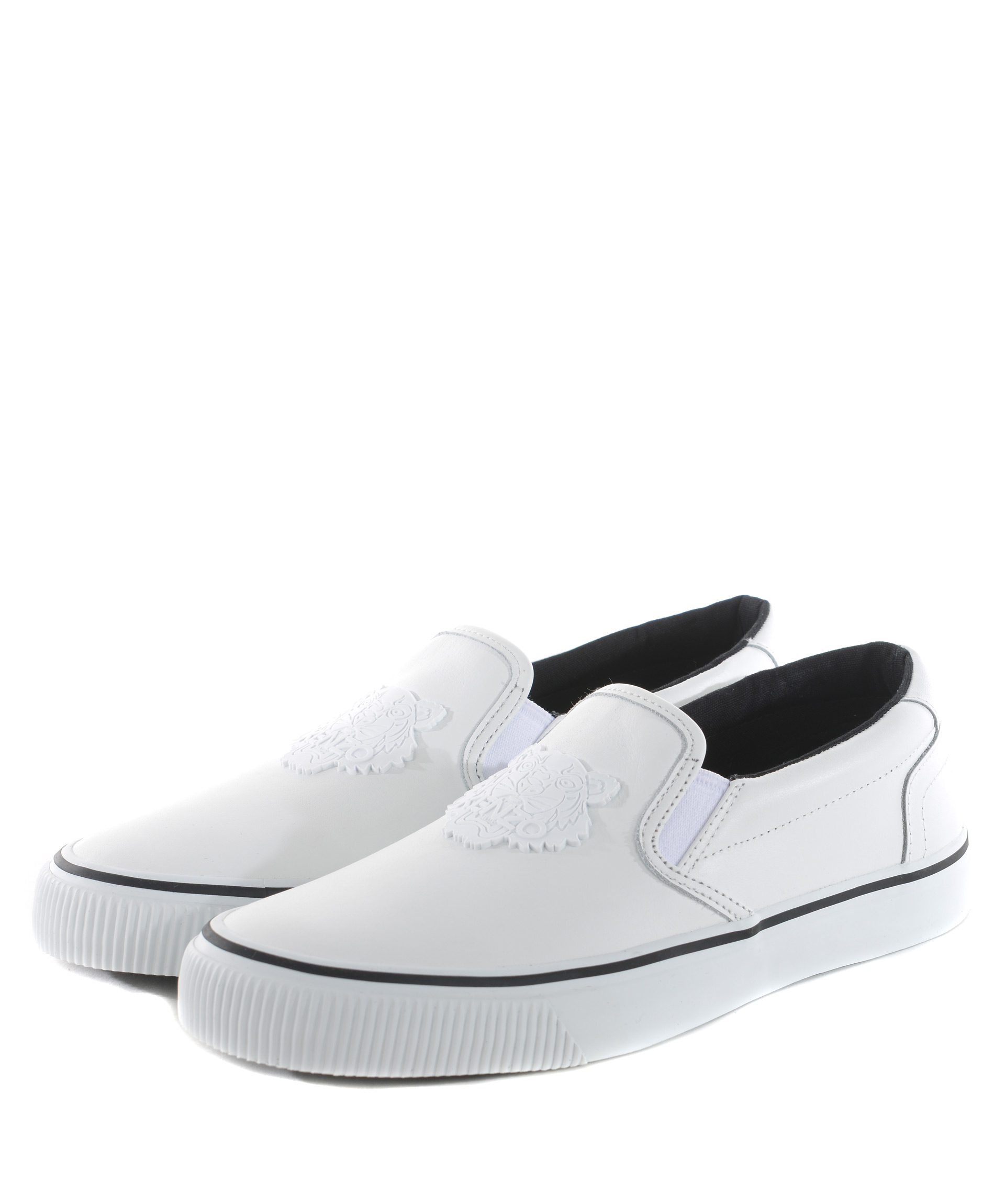 Sneakers slip-on Kenzo in pelle Bianca. Logo "tigre" in gomma applicato. Inserti elastici laterali. Suola 20 mm in gomma. Misura in foto 40
