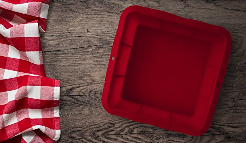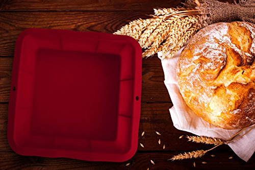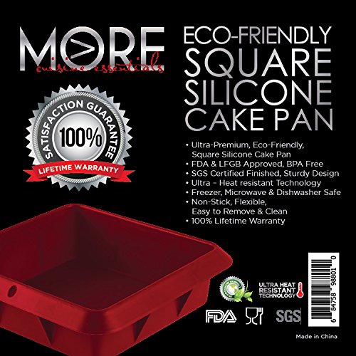 More Cuisine Essentials, Large -Thick, Eco-Friendly Non-Stick Silicone Square Bread & Cake Pan, Commercial Grade; FDA & European Grade Silicone 9x9 Inches by MORE, Burgundy Wine